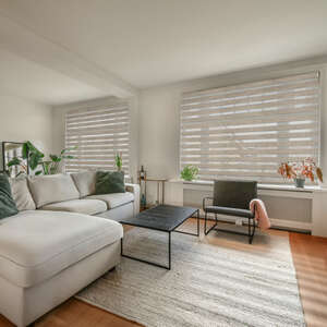 Hunter Douglas zebra shades, also known as dual or layered shades, offer a contemporary and versatile window treatment solution that combines the functionality of blinds with the softness of fabric. These shades feature alternating horizontal bands of sheer and opaque fabric, allowing you to easily transition between light filtering and room darkening as the bands align. With a simple adjustment, you can enjoy varying levels of light control and privacy to suit your needs and mood. Available in a variety of colors, textures, and patterns, Hunter Douglas zebra shades add a modern and stylish touch to any room. Their sleek design and customizable options make them an ideal choice for those seeking both aesthetic appeal and practical functionality in their window coverings.